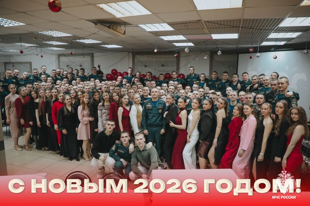 Ежегодно в новогодние праздники в стенах Уральского института ГПС МЧС России Новый год встречают курсанты 2 курса. Несмотря на то, что даже в новогоднюю ночь несение службы суточным нарядом не прекращается, атмосфера праздника наполняет учебное заведение. В этом году 165 курсантов вместе встретили Новый 2026 год в кругу своих товарищей.