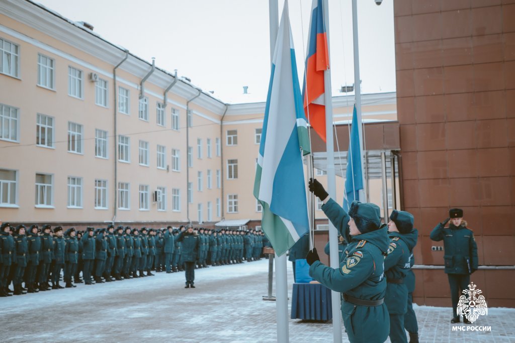 Сегодня прошло традиционное еженедельное построение личного состава под руководством начальника Уральского института ГПС МЧС России Алексея Аникеева. Мероприятие началось с церемонии подъёма Государственного флага Российской Федерации и исполнения гимна страны.