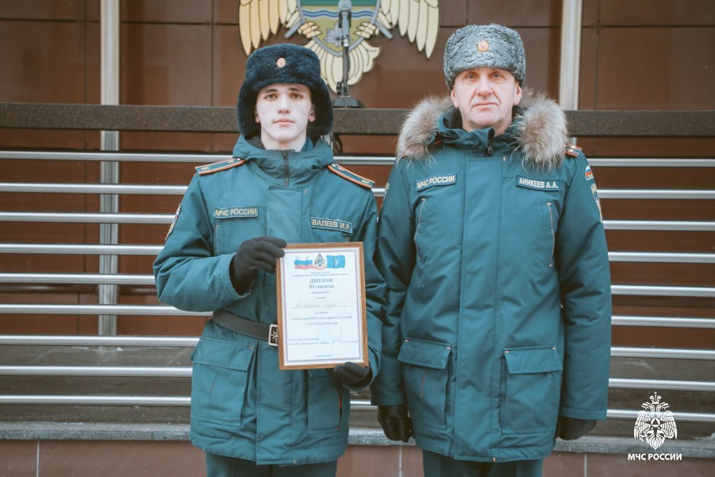 Дипломом за 3 место награждена команда 2 курса факультета пожарной и техносферной безопасности «КОМПАКТНАЯ СТРУЯ», капитан команды Ильдар Валеев.