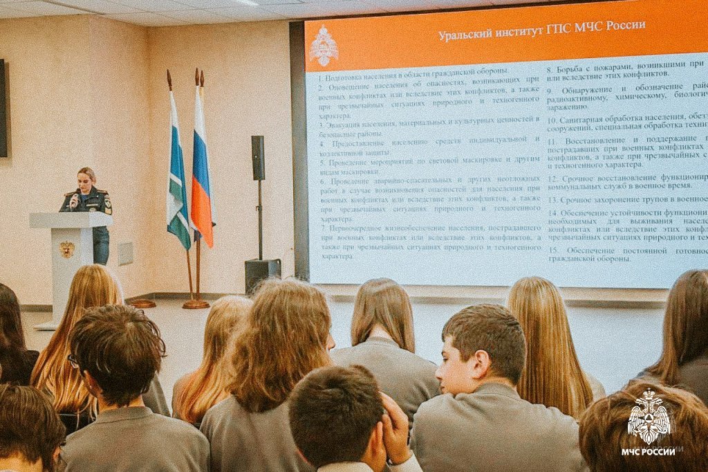 В преддверии Дня гражданской обороны, который отмечается в России 4 октября, курсанты Уральского института ГПС МЧС России провели серию открытых уроков в общеобразовательных школах столицы Урала. Мероприятия были направлены на то, чтобы познакомить подрастающее поколение с основными правилами безопасности и историей становления гражданской обороны в стране.