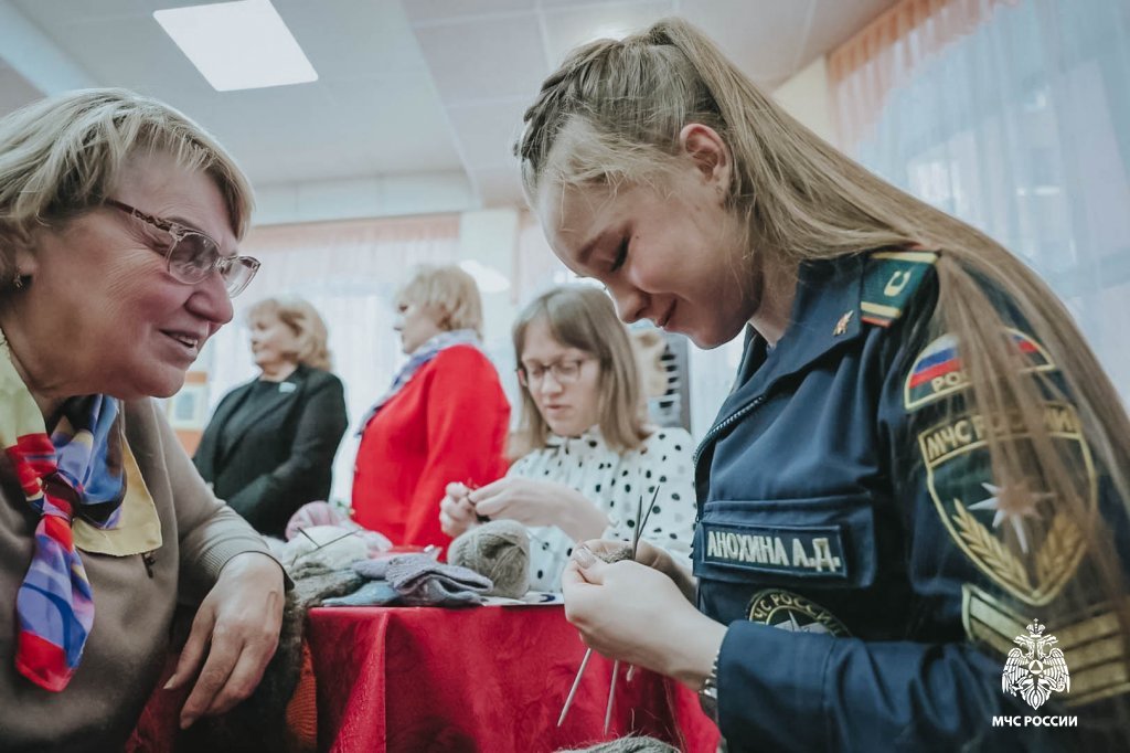 Опытные мастерицы делились умением вязать носки и варежки с молодыми волонтёрами, включая студентку нашего учебного заведения Анастасию Анохину. Это стало ярким примером преемственности поколений и заботы.