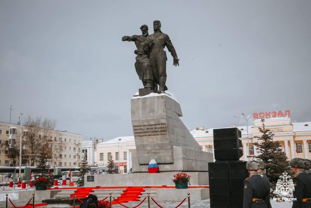 Личный состав вуза принял участие в торжественной церемонии возложения цветов к памятнику воинам Уральского добровольческого танкового корпуса.