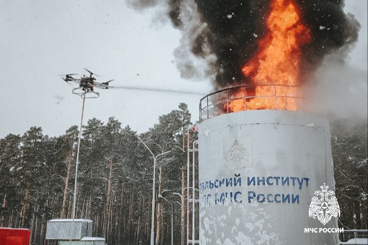 На втором учебном месте проводились аварийно-спасательные работы по спасению людей в сложных условиях — в коллекторе, а также в условных зонах пассажирского поезда и воздушного судна. Отдельное внимание уделено применению беспилотных авиационных систем при тушении резервуаров: выполнен подъём дрона, осуществлён мониторинг тепловых характеристик с использованием тепловизора и контроль обстановки с воздуха.