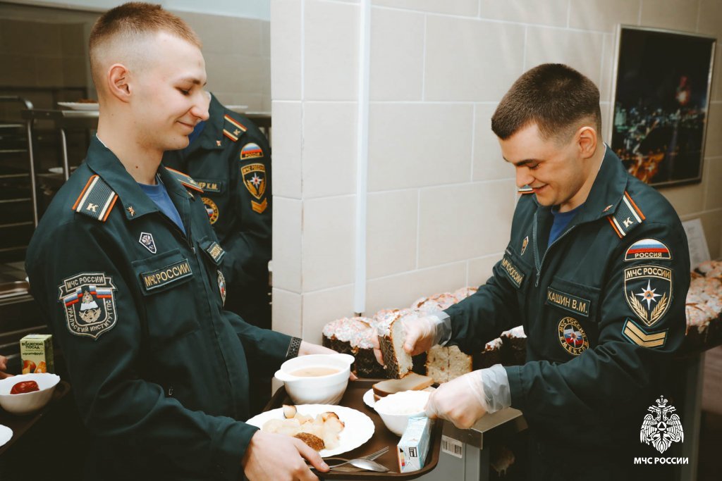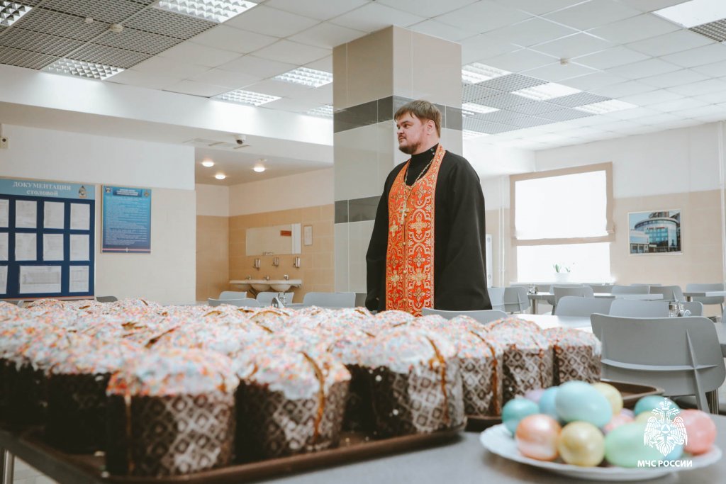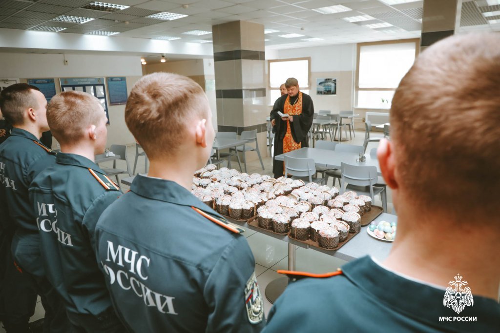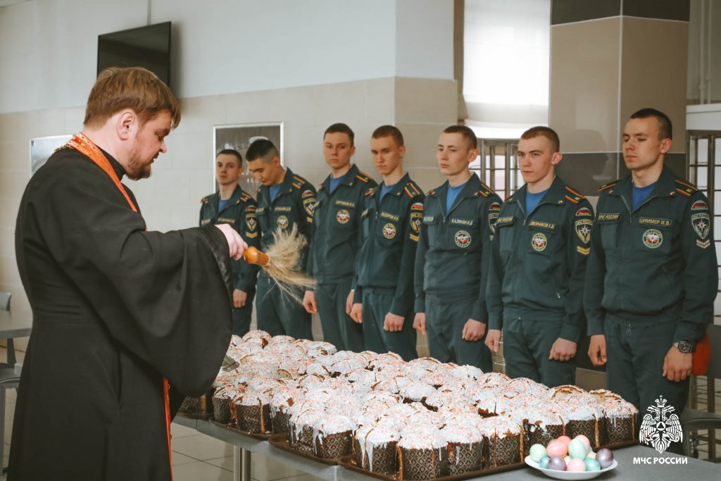 В день христианского праздника институт посетил священник, окормляющий институт, — благочинный церквей Берёзовского округа, настоятель храма Иоанна Воина города Берёзовского, иерей Кирилл Кузовников, он осветил куличи и поздравил курсантов -