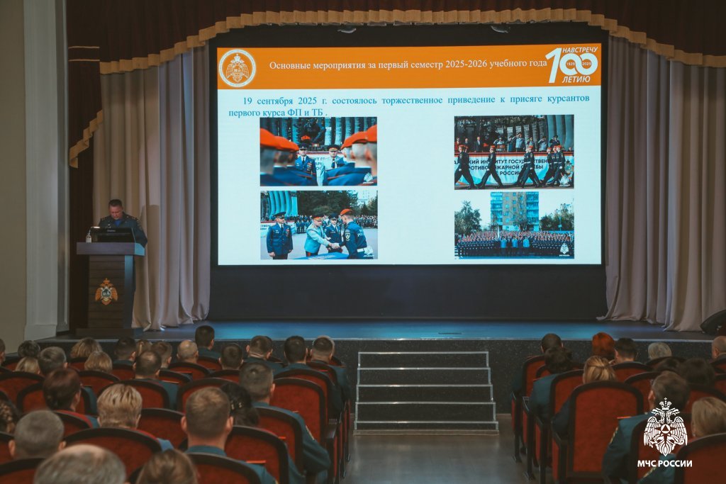 Начальник института Алексей Аникеев подвёл итоги отчётного периода. В своём докладе он отметил ключевые результаты прошедшего семестра и обозначил приоритетные направления дальнейшего развития: «Первый семестр – это фундамент всего учебного года. От того, насколько качественно и слаженно мы работали в этот период, зависит наш общий успех в подготовке квалифицированных специалистов для системы МЧС России».